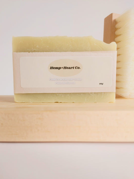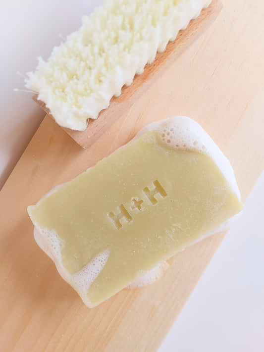 Each bar is a little work of art! Handcrafted with natural ingredients like hemp oil, cocoa butter, coconut oil, and olive oil. The soap cuts through grease like no other. After working on the car or fixing the chain on the kids bikes, it gets the job done quickly and efficiently.
